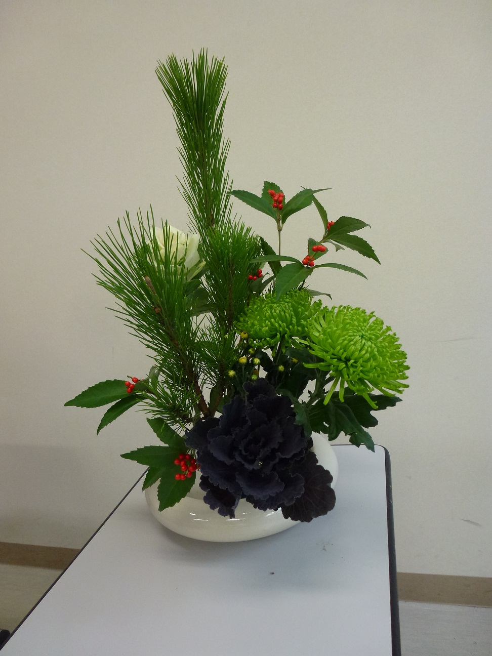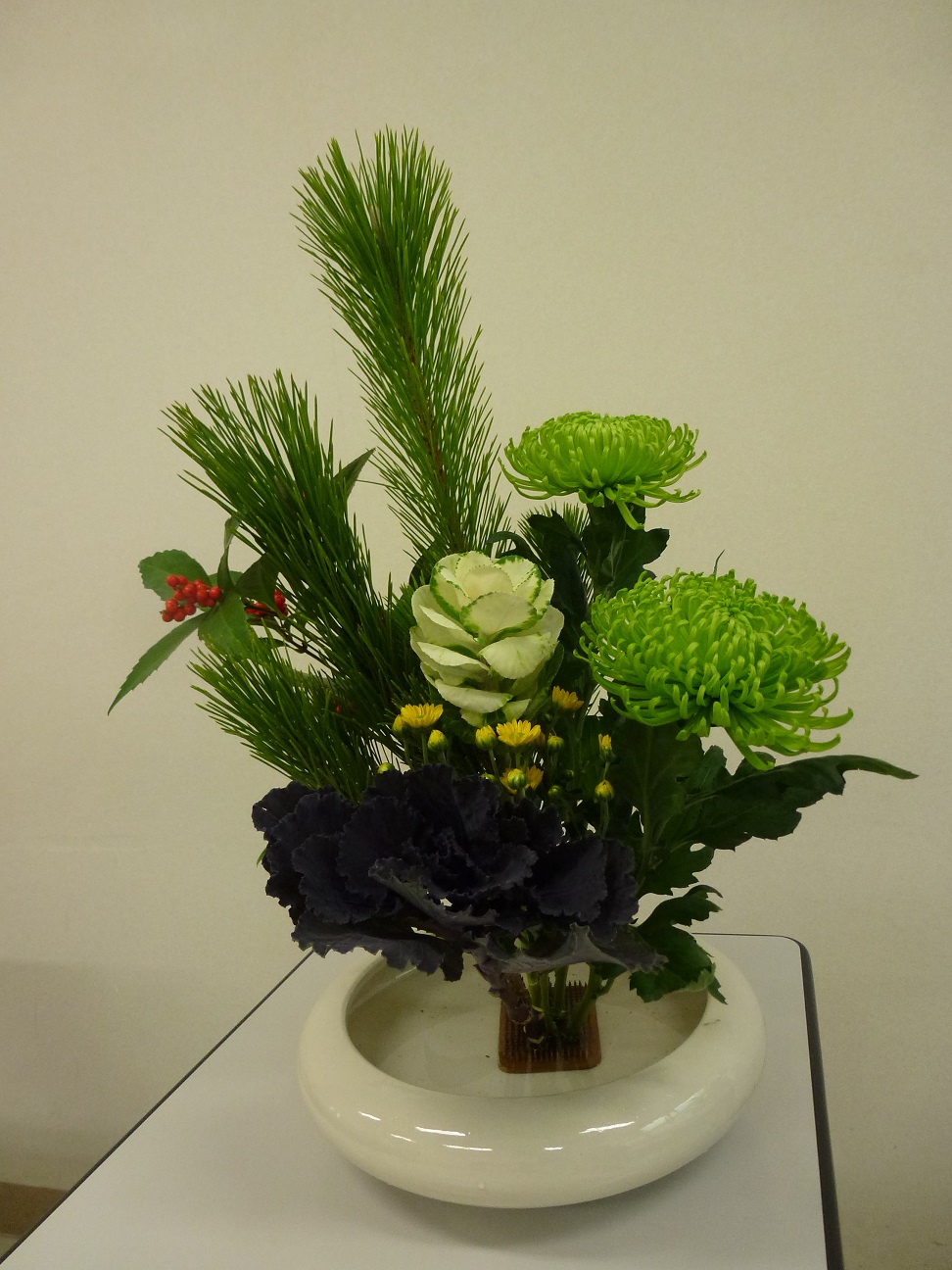 女性部「生け花教室」より、今月のお稽古は、お正月のお花です。