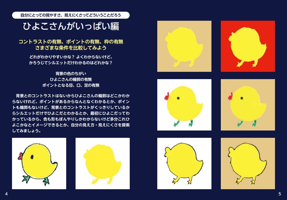 メルマガ色鉛筆より40のレポート、見え方・見えにくさの体験カラーページ、レポート、イラストすべて見えない見えにくい仲間の作品です。