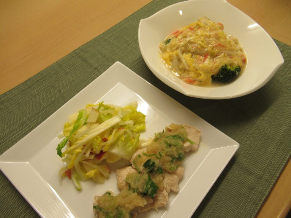 白菜とりんごのサラダは、薄い塩味でしっとりとさせた白菜と